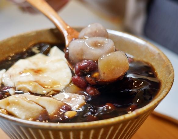 - 介紹: 市場裡有好幾攤賣甜湯的,這家是我最常回購的。豆花是 典型鹽滷豆花,口感綿密細緻,充滿濃濃的豆香味。糖水是 傳統的薑汁糖水,冬天喝特別舒服。配料也很傳統:飽滿的花生、煮得軟綿的紅豆、QQ的粉圓。冬天就換成 熱呼呼的燒仙草,料自己加。